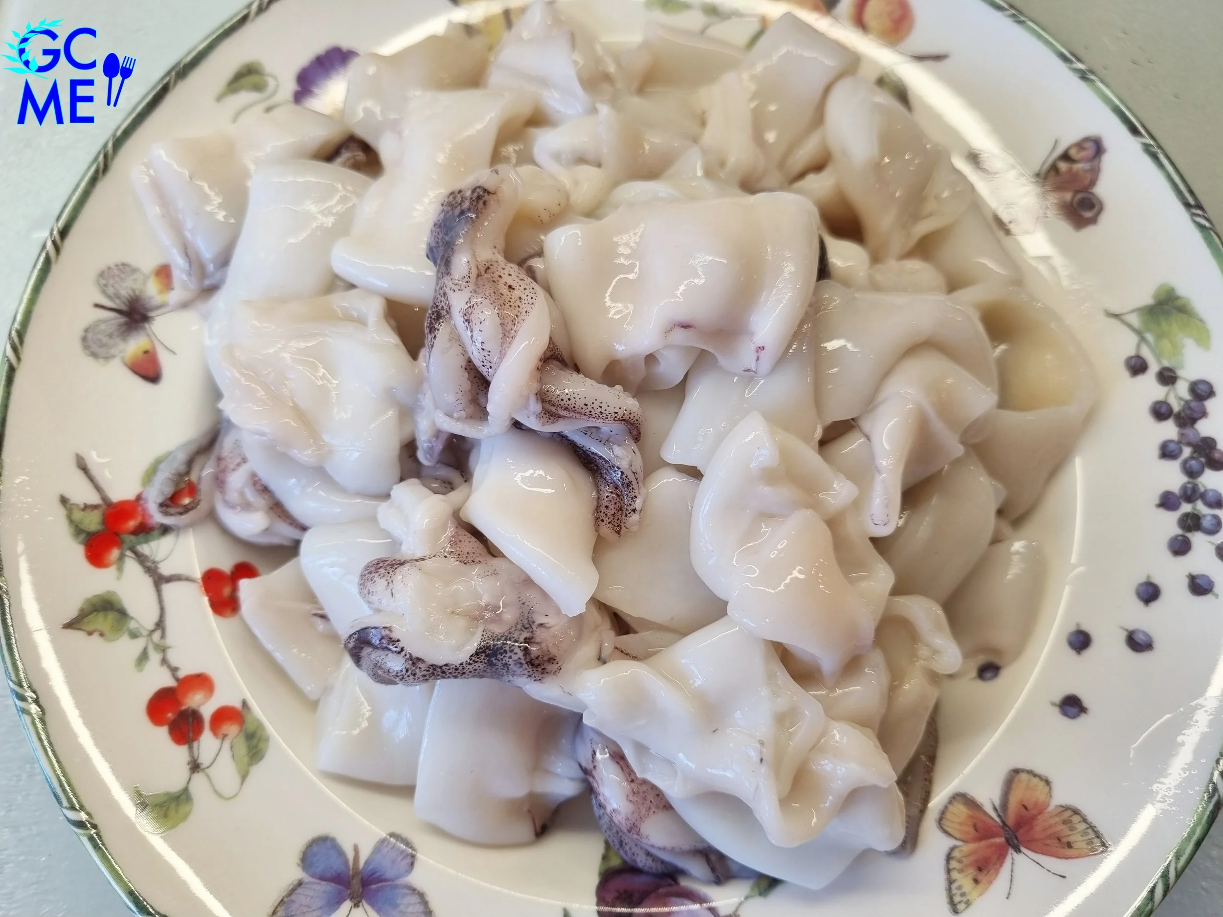 2. I used frozen, whole Calamari (with head and tentacles), which I prefer, because they are still tender even after they are cooked!