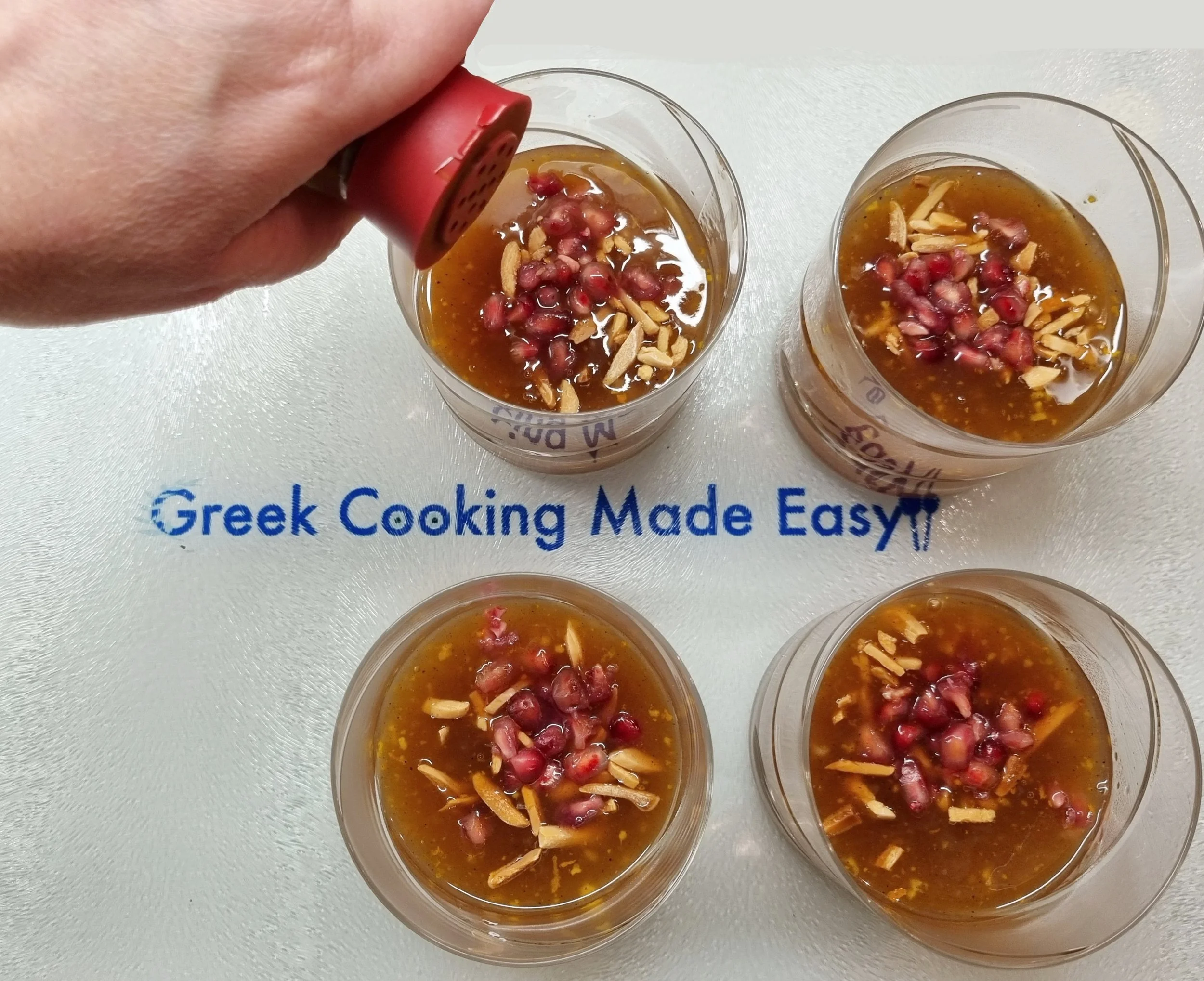 17. Kolivozoumo is now ready to be placed in individual glasses or small bowls while still very hot!