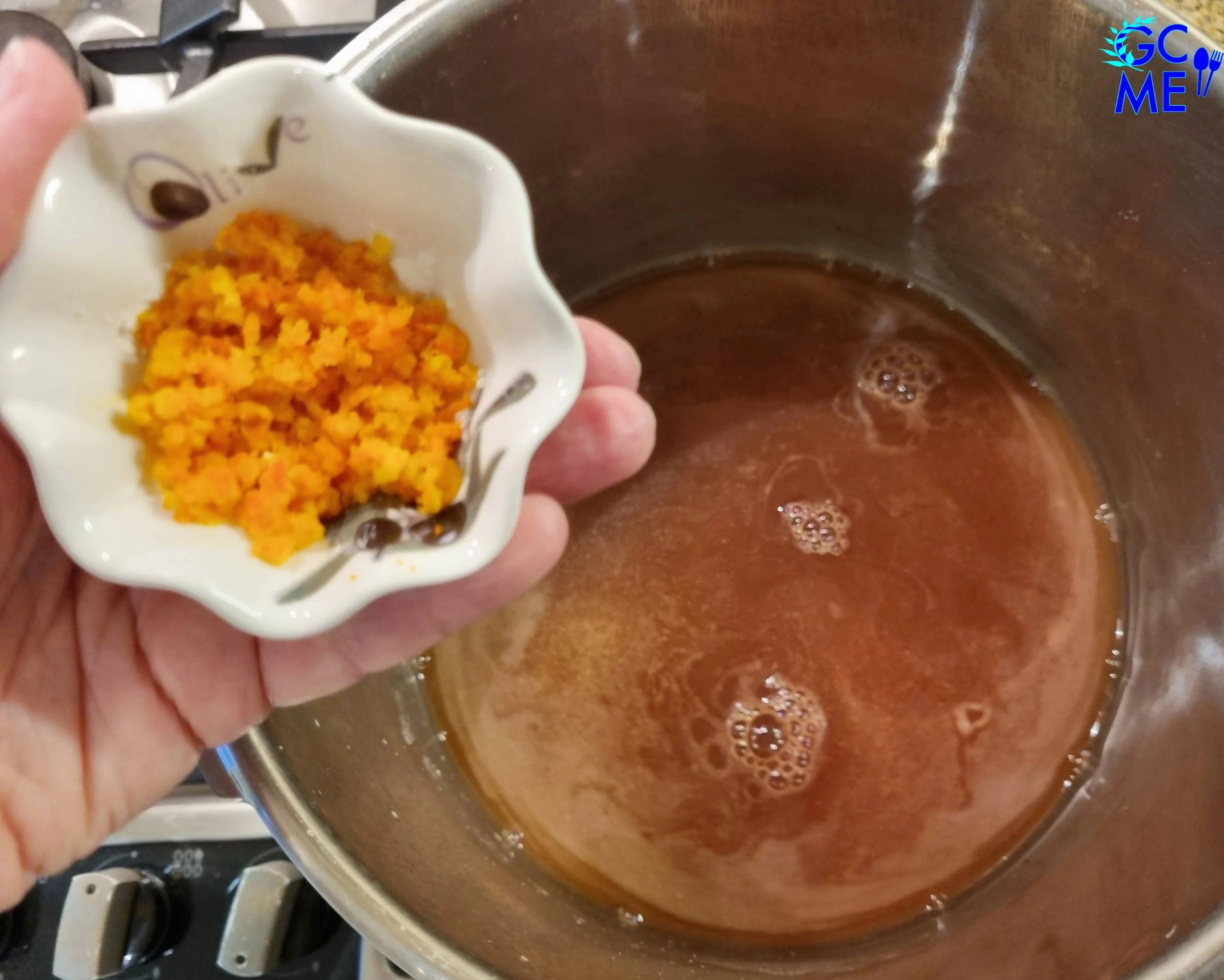 16. Just before turning off the heat, add the orange zest blending it in. Turn off the heat.