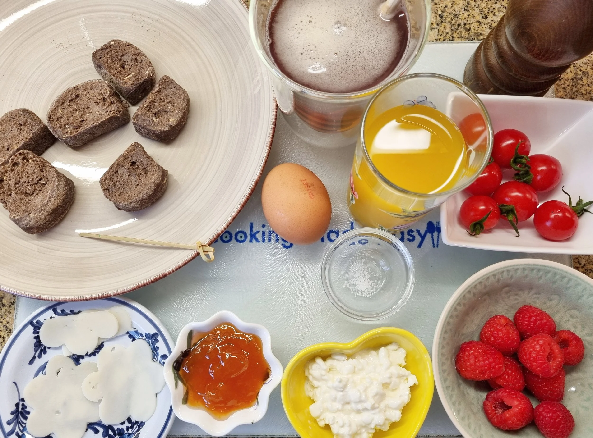 This recipe is for an easy breakfast or brunch. It consists of carob rusks that are very healthy and trendy, a boiled egg, cheese, jam and fruit which means it is a complete meal to provide you with energy to start your day.