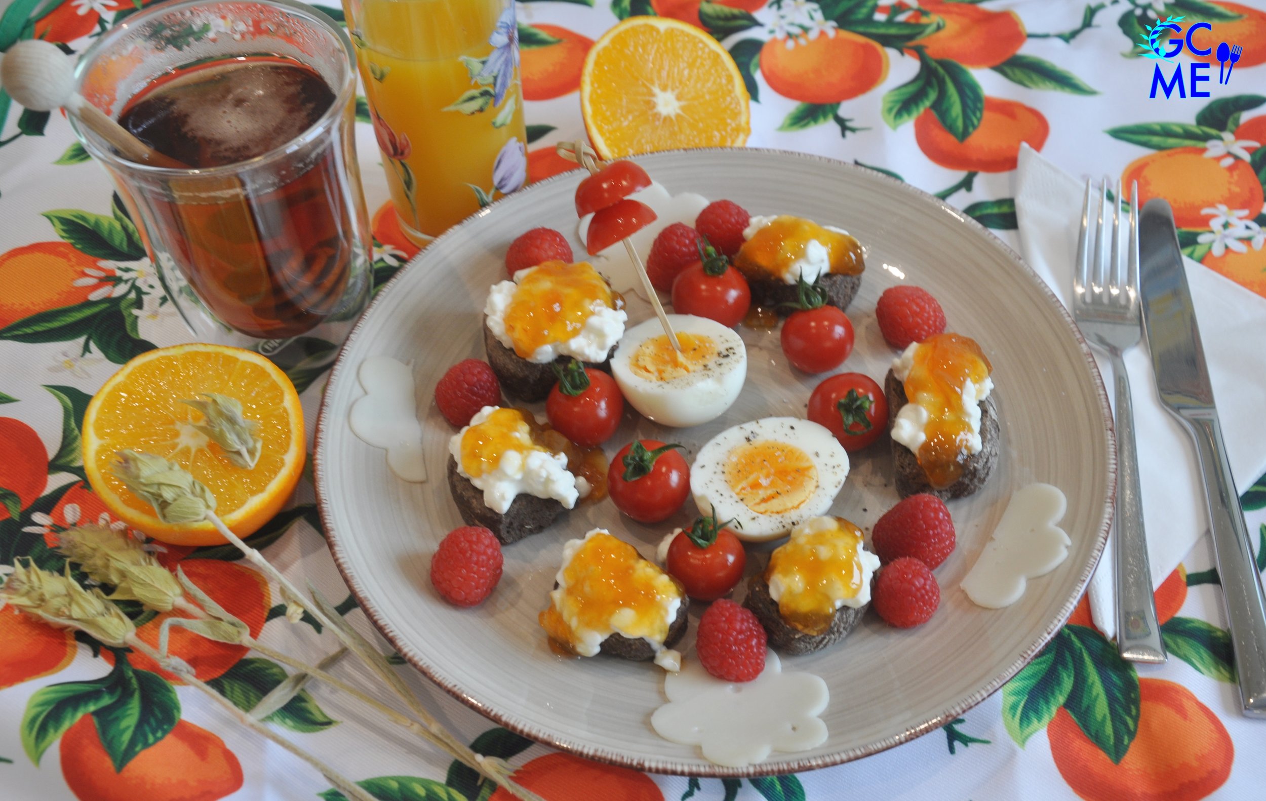 Σερβίρετε το πρωινό αμέσως όσο ο χυμός πορτοκαλιού είναι ακόμα φρέσκος και το τσάι πολύ ζεστό.