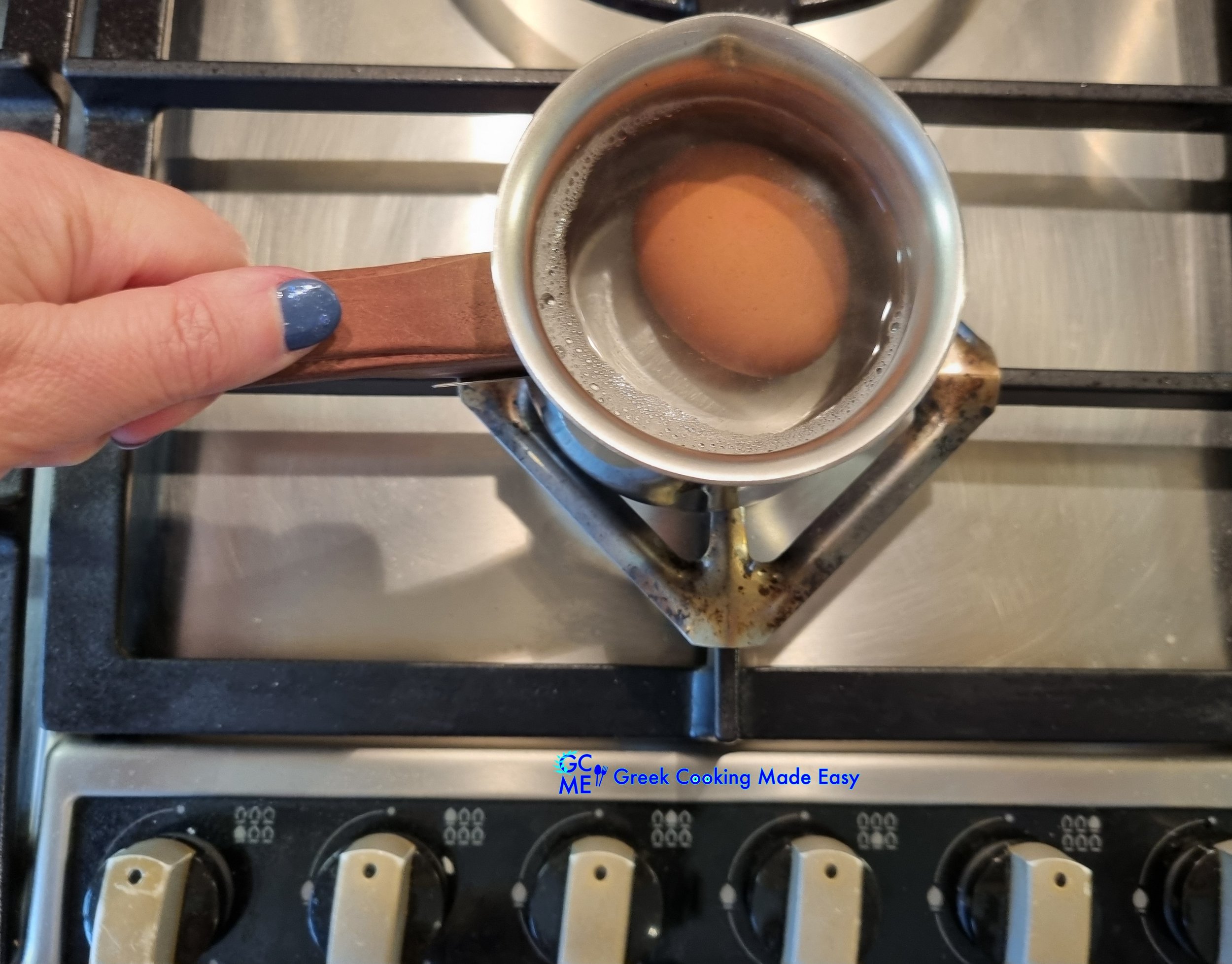1. Start by boiling the egg by dipping it in a small pot with water and boil in medium heat for: 7'-8' for soft boiled or 9' for hard boiled.