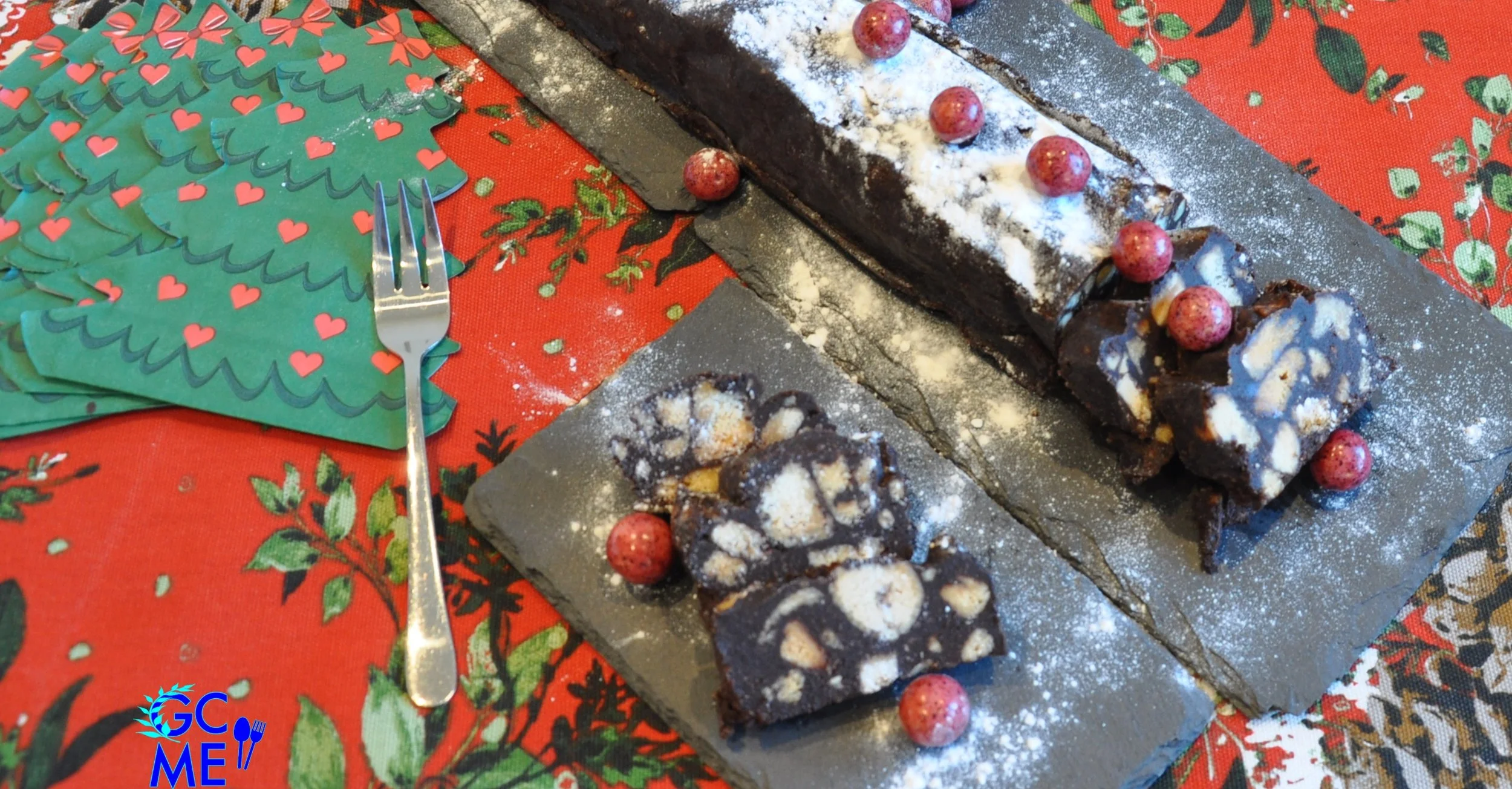 🎄 Εύκολος Κορμός Ψυγείου με Κουραμπιέδες Χωρίς Μίξερ (Σαλάμι/Μωσαϊκό)