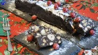 Chocolate Log/Kormos/Salami or Mosaic with Kourabiedes Made Easy (without Mixer) - Eykolos Kormos Psygeiou me Kourabiedes Hwris Mixer (Salami/Mosaiko)