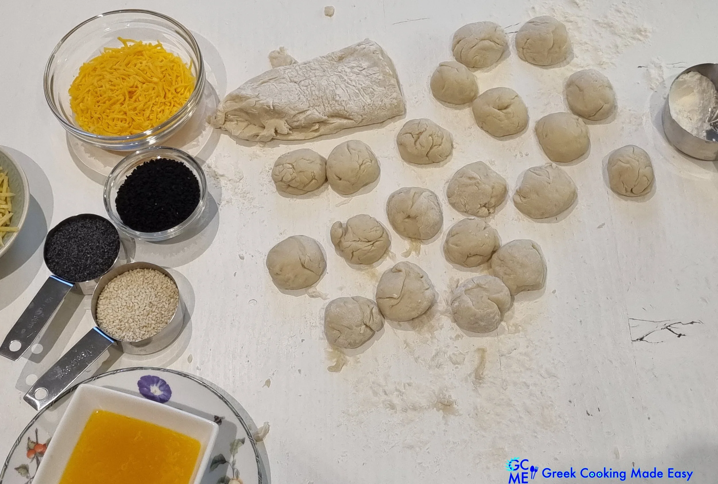17. Χωρίστε τη ζύμη με ένα κοφτερό μαχαίρι σε 26 κύβους και στη συνέχεια πλάστε τους με τα χέρια σας σε μικρές μπάλες (ψωμάκια).