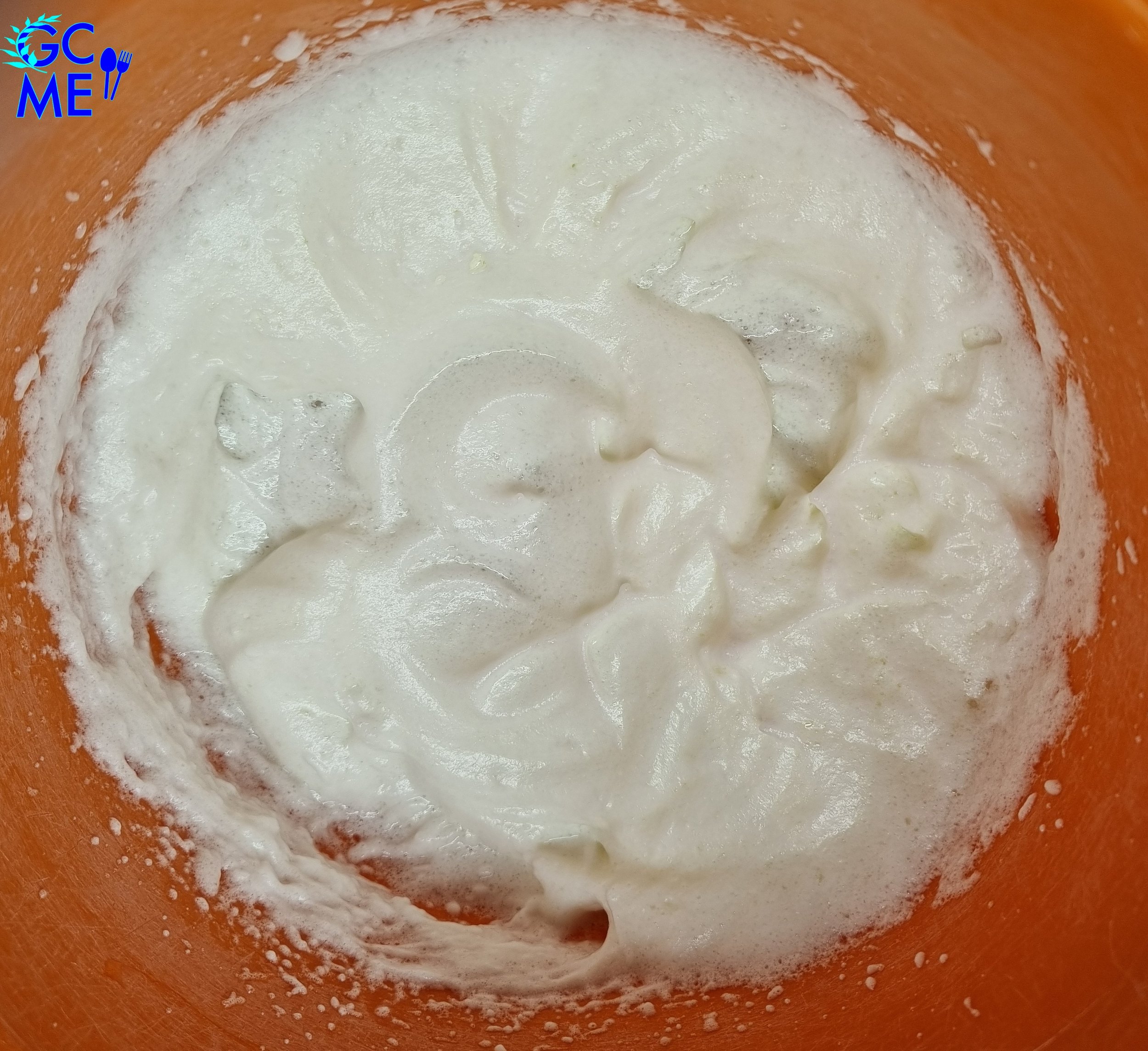 14. With your hand mixer, whisk the egg whites for a few min., until they become white, frothy and the mixer makes soft peaks on top.