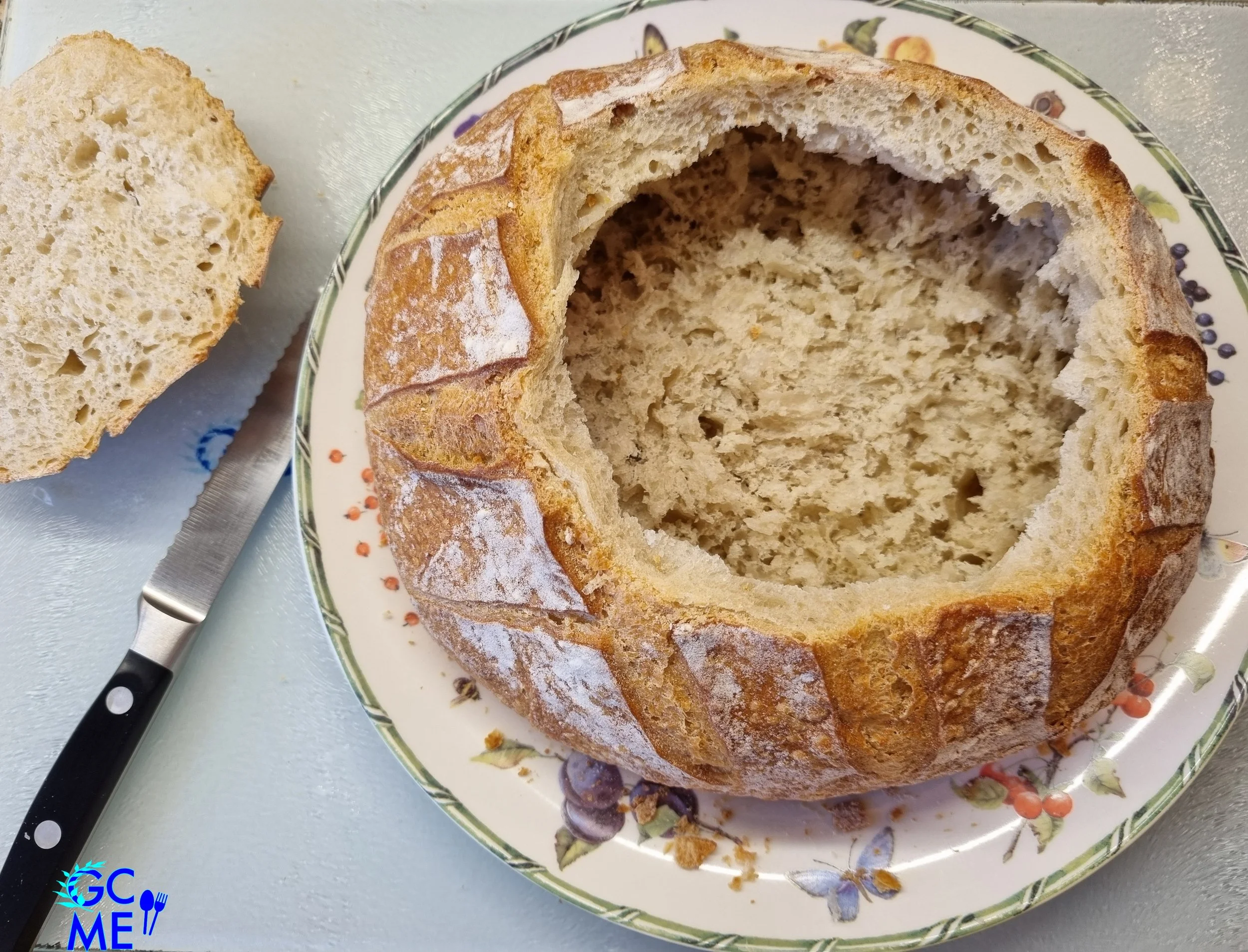 6. With a sharp knife, cut the top of the round bread, creating a lid.