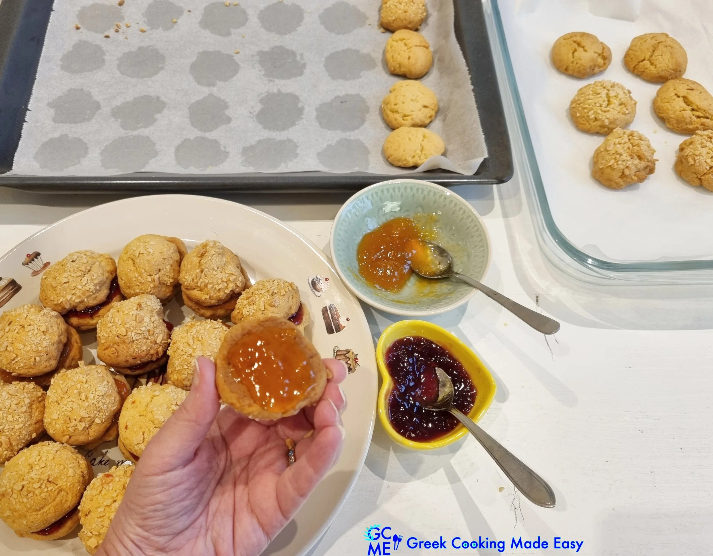 21. Επαναλάβετε για όλα τα κουλουράκια εναλλάσοντας τις 2 μαρμελάδες.