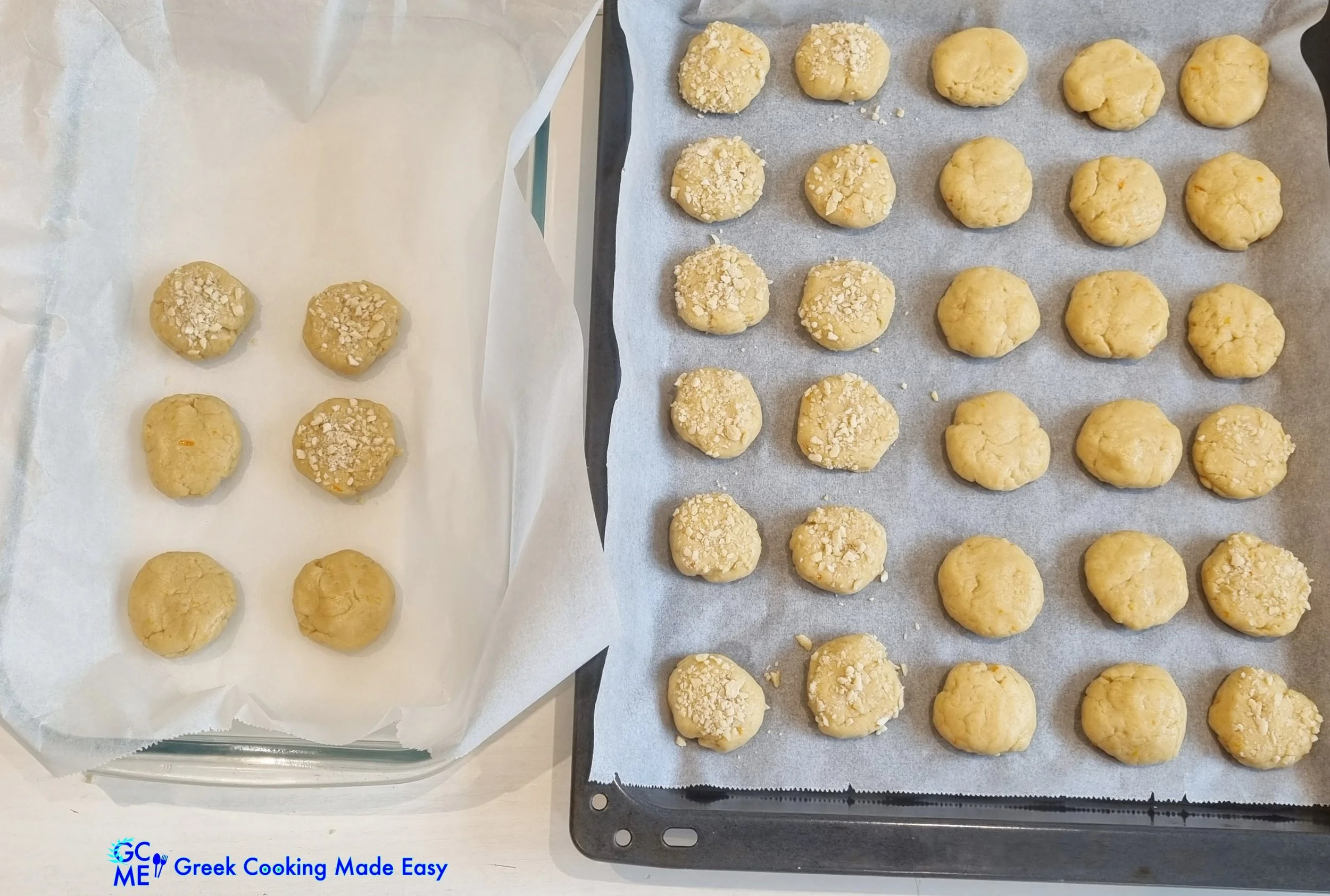 14. Τα 2 ταψιά με κουλουράκια είναι έτοιμα για ψήσιμο.