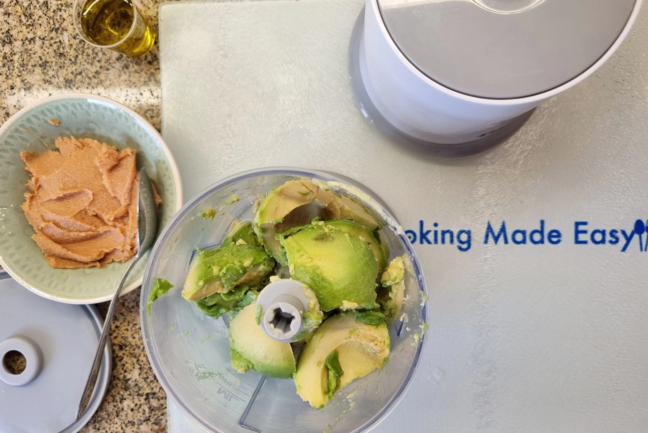 4. Tip: Avocado's pulp gets brown very quickly, so do not try to clean it earlier on the day, but have it ready just a few min before preparing the Taramosalata.