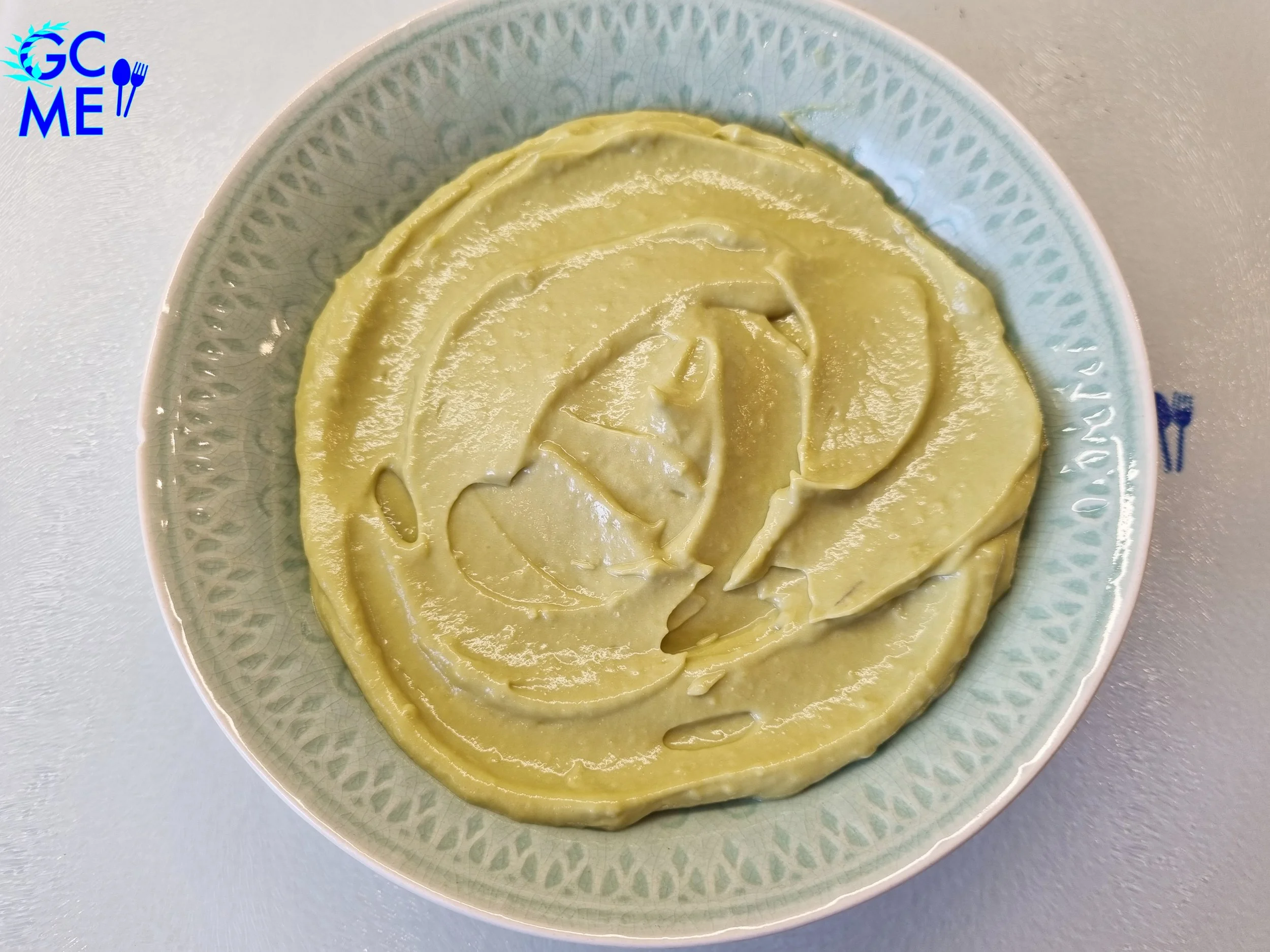 9. Beat until all ingredients are well blended together, and you get a homogenized, creamy dip, very fluffy and with a surprising light green color.