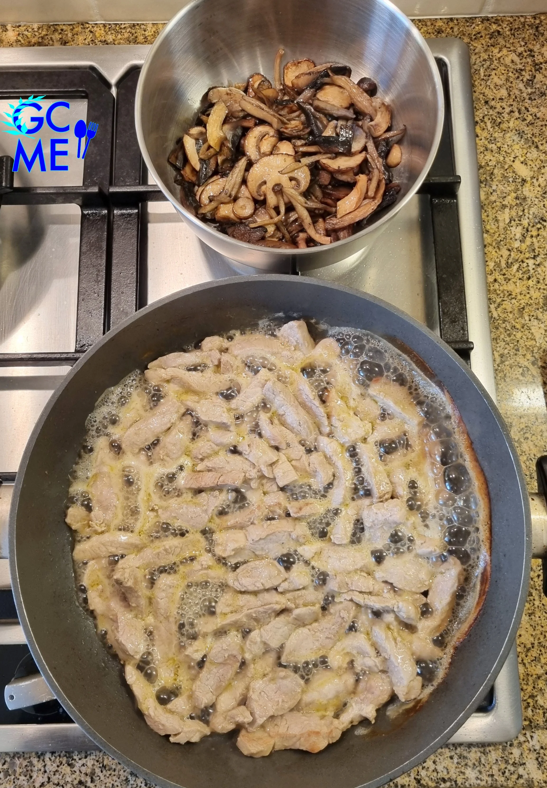 Greek Tigania i.e. Stir Fried Pork Tenderloin with Mushrooms and Wine - Tigania Psaronefri me Manitaria kai Krasi
