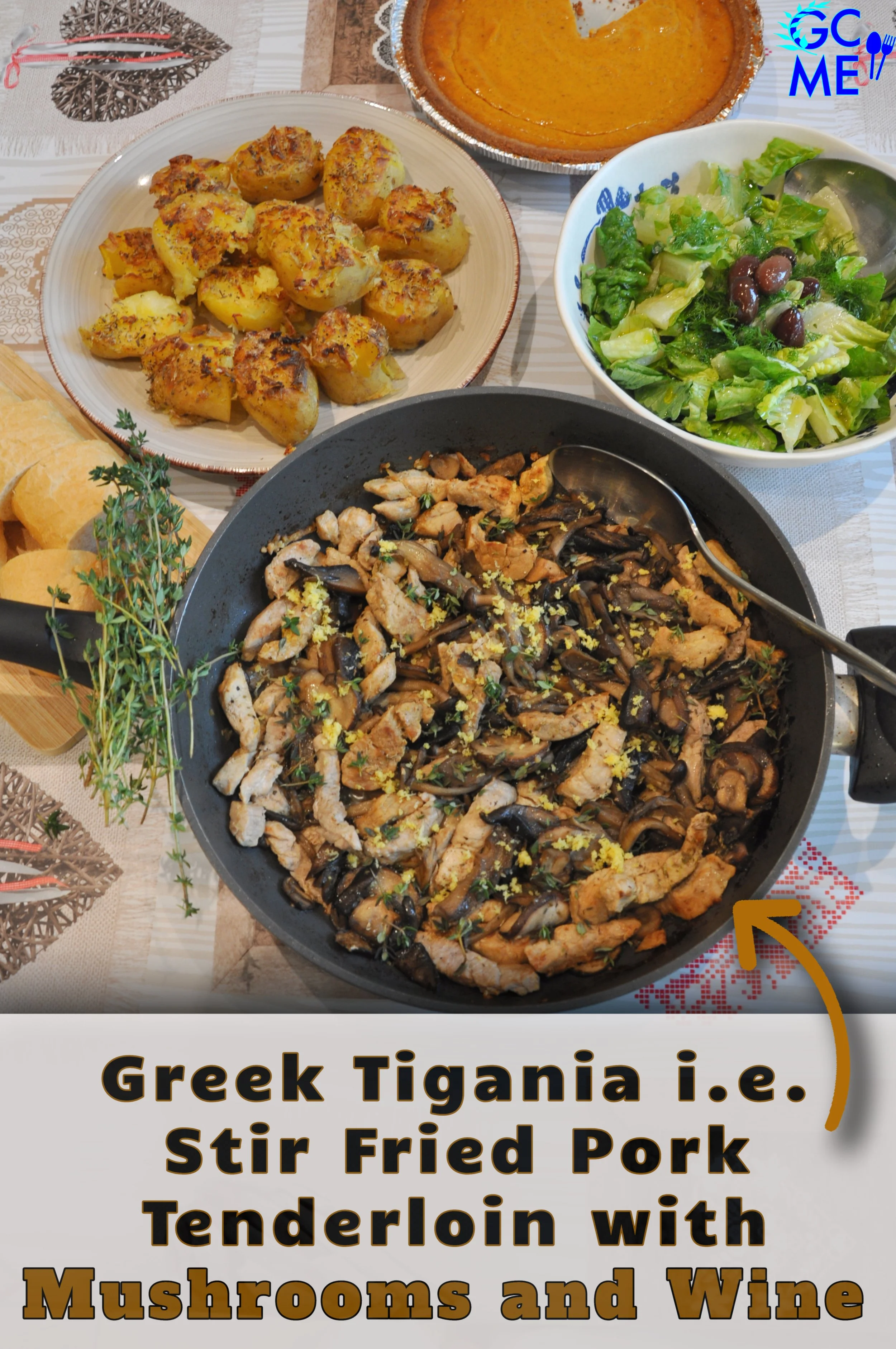 Greek Tigania i.e. Stir Fried Pork Tenderloin with Mushrooms and Wine