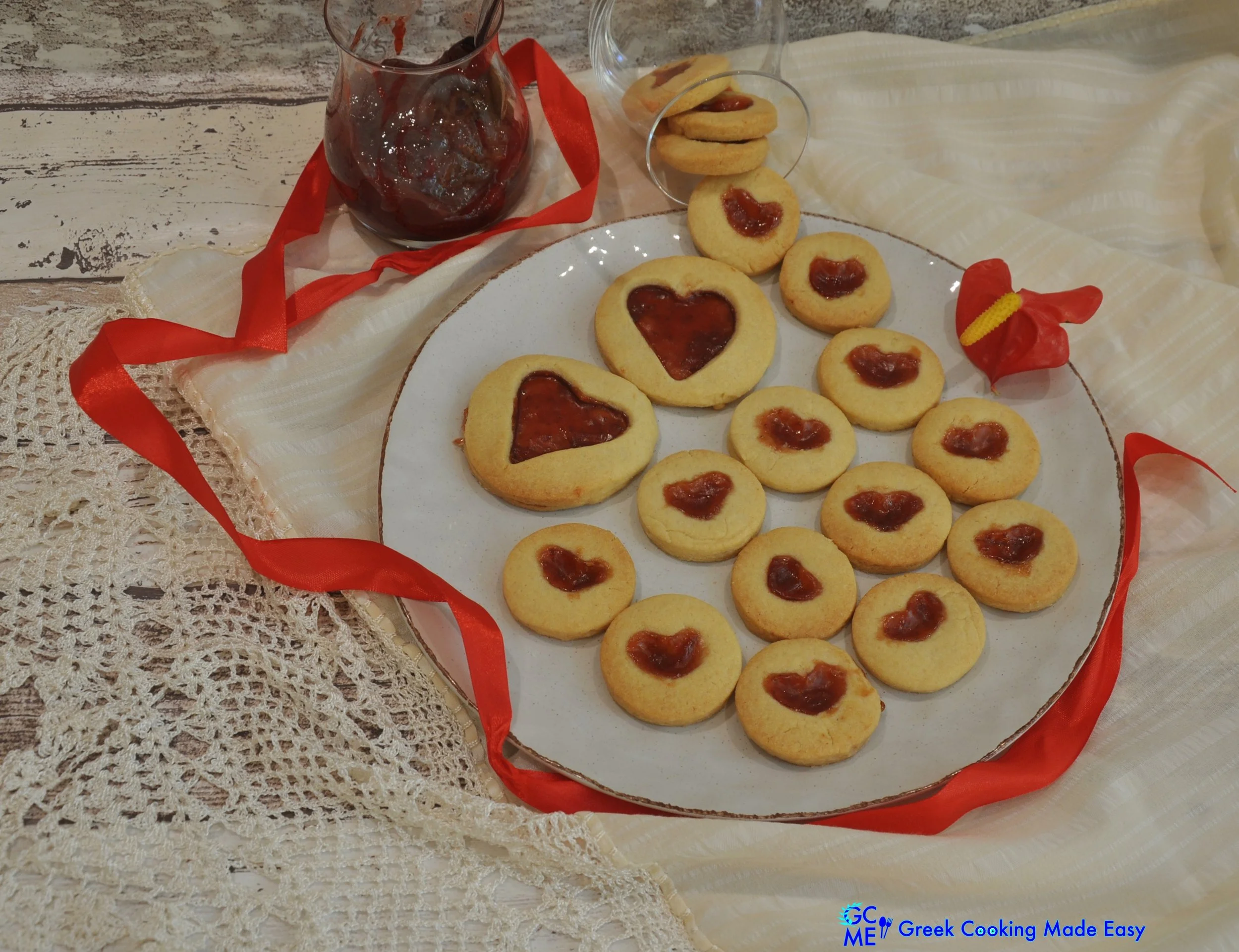 Heart Butter Biscuits with Strawberry Jam filling - Biskota Voutyrou Kardia me yemisi Marmelada Fraoula